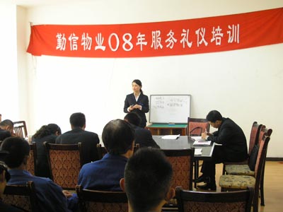 勤信物業(yè)公司自2008年4月中旬起,針對服務(wù)禮儀開(kāi)展專(zhuān)項系列培訓課程,已有50余名窗口員工參加培訓,經(jīng)過(guò)培訓,員工們的服務(wù)更加規范,培訓取得了良好效果,推動(dòng)優(yōu)質(zhì)服務(wù)窗口創(chuàng )建工作的進(jìn)行。