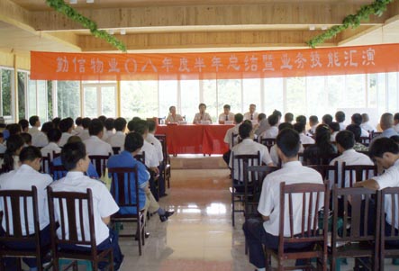 “業(yè)主滿(mǎn)意是我們永遠的追求!”一陣激昂的公司宣言拉開(kāi)了成都勤信物業(yè)服務(wù)有限公司“2008年半年總結暨業(yè)務(wù)技能匯演”的序幕。會(huì )上,總經(jīng)理周雪平對公司及全體員工在遭遇地震天災、物價(jià)上漲等多種困難的上半年中所取得的成績(jì)表示了肯定,同時(shí)也對下半年的工作提出了期望。