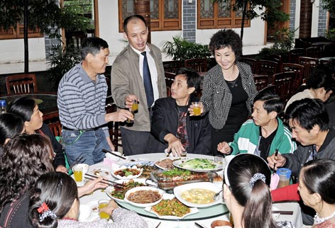 同日上午830,三輛載著(zhù)名士公館160多名業(yè)主及家人的公交車(chē)徐徐開(kāi)出小區,始向三圣鄉滿(mǎn)天星花園,一路上,業(yè)主門(mén)情緒高漲,相互問(wèn)候,敘訴友情,半個(gè)多小時(shí),到達目的地——滿(mǎn)天星花園。