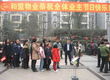 為了歡慶春節的來(lái)臨,該公司特地為業(yè)主朋友舉辦了一場(chǎng)迎春游園活動(dòng)。一年一度的新春游園活動(dòng)是和盟物業(yè)公司傳統的社區活動(dòng)。雖是傳統節目,可通過(guò)和盟物業(yè)人精心的創(chuàng )新,今年更是別有一番風(fēng)味:猜燈謎、夾球賽跑、吊酒瓶,轉魔方、頂碗接力、摸牛鼻子、滾鐵環(huán)、小區拔河……