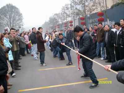 接著(zhù)是趣味籃球賽,選手們全神貫注,人球合一,置身于忘我的境界,拾球、瞄準、拋球、進(jìn)筐,一氣呵成,隨手面至。集體的跳大繩和拔河使比賽達到了白熱化,小小的比賽場(chǎng)地上,成了體力與智力,戰斗力與凝聚力的較量。隊員們顧不了額頭的汗水,顧不了腿上的疼痛,顧不了嗓子已經(jīng)喊啞,顧不了手心已被磨破,只要能出一份力,能為團隊爭取一份榮譽(yù),就要努力奮斗拼搏。隨行的親友們和拉拉隊員們始終在選手們身旁為他們加油吶喊,拍掌鼓勁。不論成績(jì)怎樣,一樣搏得一片叫好聲,這里成了歡樂(lè )的海洋!運動(dòng)會(huì )于五時(shí)許順利結束。隨后公司洪云總經(jīng)理為獲勝隊頒發(fā)了獎品。趣味運動(dòng)會(huì )獲得圓滿(mǎn)成功。