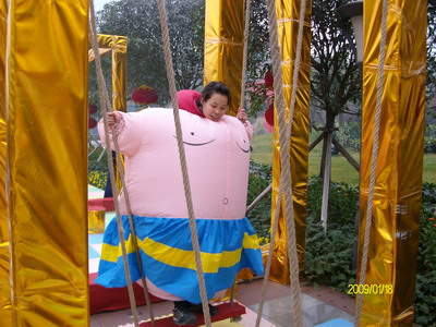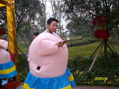 第一項是突破障礙。有人說(shuō)日本的相撲身材魁梧,但當選手們穿上特制的外衣鼓起風(fēng)機后,個(gè)個(gè)成了大胖子,超過(guò)了日本相撲,選手們像陣風(fēng)一樣穿過(guò)了獨木橋,跳過(guò)了梅花樁,蕩過(guò)了秋千,射中靶心,最后投籃進(jìn)筐,個(gè)個(gè)身手靈巧,出手不凡。
