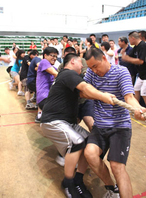 為活躍企業(yè)文化、豐富員工文娛生活,7月10日至8月5日,忠信物業(yè)員工運動(dòng)會(huì )在炎熱的盛夏開(kāi)賽了。運動(dòng)會(huì )以團體賽為主,活動(dòng)項目設有羽毛球、乒乓球、定位投籃、拔河等四項,員工們每周抽出半天時(shí)間,分別在英派斯運動(dòng)館和西南財大體育館進(jìn)行比賽。公司總部及所屬四個(gè)片區均派出代表隊積極參與,選派精干隊員參賽。夏日天氣悶熱,但隊員們的拼搏意識和奮勇?tīng)幭鹊臒崆楦鼮楦邼q,場(chǎng)上揮汗如雨,場(chǎng)下鼓勁助威,整個(gè)賽事緊張激烈,熱情高漲,充分展現了忠信員工快樂(lè )生活、快樂(lè )工作的精神風(fēng)貌。