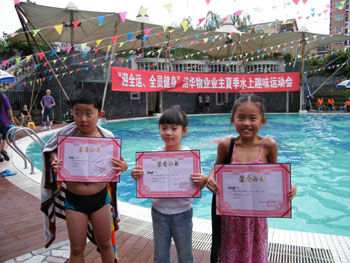 為了加強業(yè)主與物業(yè)公司、業(yè)主與業(yè)主之間的溝通、交流由成都潔華物業(yè)管理有限公司牽頭組織的業(yè)主水上趣味運動(dòng)會(huì )在情融苑小區游泳池開(kāi)始了。