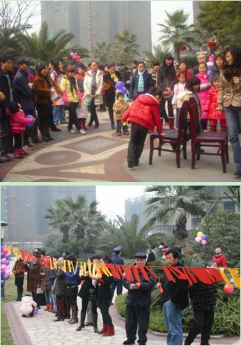 新春佳節作為中華民族最為傳統、最為喜慶的節日,在這佳節來(lái)臨之際,公司于2010年2月6日在公司所服務(wù)的項目柳城誼苑、上林寬境、觀(guān)瀾半島、情融苑、晴朗居、花間集、西江月、時(shí)代尊城幾個(gè)小區同時(shí)進(jìn)行主題為“迎新春,建和諧社區”的新春游園活動(dòng),讓平日里奔忙的各位業(yè)主朋友在輕松愉悅的氣氛中提前品味“春節”的味道。
