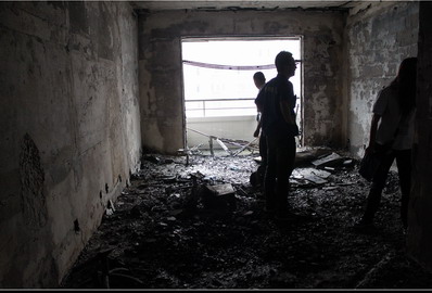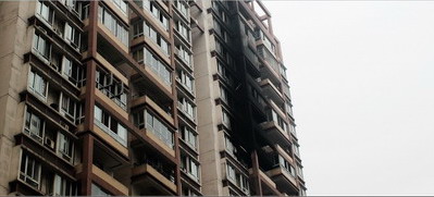 20105246時(shí)許,位于城南的天府名居小區被人群的驚呼打破了平靜。最先發(fā)現4棟起火的是天府名居秩序維護隊隊長(cháng)唐其永,此時(shí),火舌正從411-4號的窗口噴出,火勢沿著(zhù)風(fēng)勢蔓延,黑煙一直往上熏黑了上面六層的外墻。