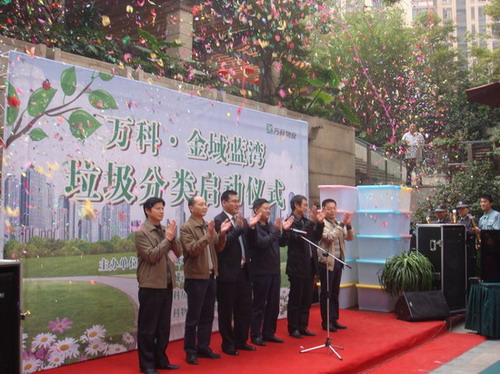在成都市政府、成都市城市管理局等部門(mén)的大力支持、倡導下,經(jīng)過(guò)3個(gè)月的準備工作,由成都萬(wàn)科房地產(chǎn)有限公司、成都萬(wàn)科物業(yè)服務(wù)有限公司主辦的生活垃圾分類(lèi)處理啟動(dòng)儀式上周六在金域藍灣舉行,成華區轄區內的萬(wàn)科金色家園、金域藍灣有幸成為全市首批實(shí)現垃圾分類(lèi)的小區。