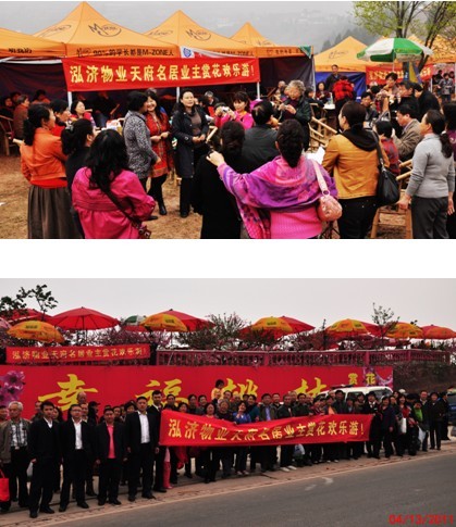 這次活動(dòng)共有近260名業(yè)主參與;這天上午九時(shí),在物業(yè)服務(wù)中心工作人員的精心安排下,業(yè)主們十分有序的上了車(chē),六輛身披“泓濟物業(yè)天府名居業(yè)主賞花歡樂(lè )游活動(dòng)”標語(yǔ)的豪華大巴滿(mǎn)載業(yè)主從小區大門(mén)口出發(fā),依次有序的駛向“龍泉幸福桃林”……