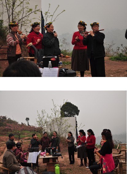 到達目的地后,業(yè)主們與工作人員開(kāi)始合影留戀,很多已熟識的業(yè)主們三五結伴穿越在林中。有的攝影愛(ài)好者當起了義務(wù)拍照員;有的中老年朋友們打麻將、聊家常;對于很少見(jiàn)到初春漫山遍野的桃花的孩子們更是興奮不已,她們欣喜若狂的跑到花叢中嬉戲打鬧,惹得大家是一陣歡笑;老年朋友們也不干示弱,不一會(huì )功夫就組織了20多位愛(ài)好音樂(lè )的朋友們彈起了琴、吹起了葫蘆絲、唱起了歌、跳起了舞。呈現出一片喜悅的氣氛。