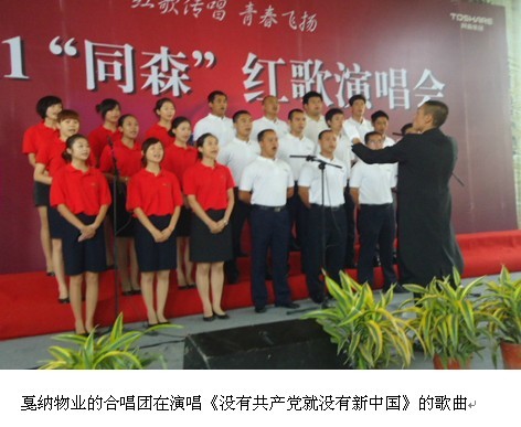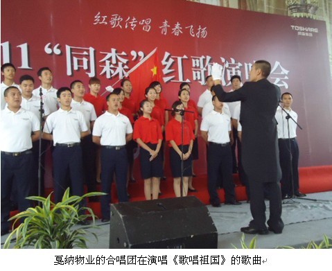 二〇一一年八月六日,四川省同森集團舉辦了“2011同森紅歌演唱會(huì )”,作為同森集團的下屬公司成都戛納物業(yè)各部門(mén)廣大員工積極參與了這次唱革命歌曲,弘揚愛(ài)國主義精神的活動(dòng)。