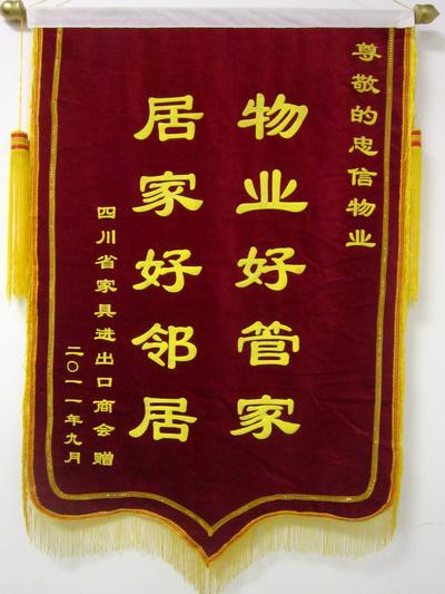 2011年10月8日,國慶大假后第一天上班,大合倉業(yè)主“四川省家具進(jìn)出口商會(huì )”工作人員就來(lái)到忠信公司總部,手執感謝信并送來(lái)了一面大紅錦旗:“物業(yè)好管家,居家好鄰居”。