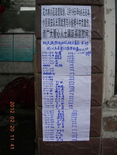 又訊 “2.19”周斌清勇斗盜賊事件發(fā)生當日,花木林業(yè)主委員會(huì )立即召開(kāi)募捐會(huì )議,業(yè)主委員會(huì )成員紛紛帶頭捐款。