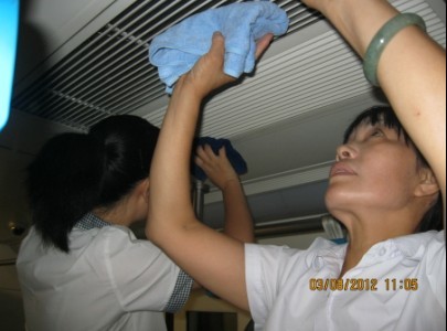 首先,物業(yè)服務(wù)中心將宣傳海報張貼在醒目的位置,深化宣傳動(dòng)員工作,營(yíng)造文明共建的濃厚氛圍。為確實(shí)提升服務(wù)品質(zhì),服務(wù)中心還制定了加強電客車(chē)細節清潔的措施,將每月2次的電客車(chē)通風(fēng)口清潔改為每周2次,對電客車(chē)窗戶(hù)四角、扶手、燈罩等區域進(jìn)行全面清潔,地面用單擦機進(jìn)行每日清潔,并對每天高峰回場(chǎng)車(chē)加強衛生清潔管控工作,尤其對有嘔吐物的車(chē)廂及時(shí)進(jìn)行消毒,保證無(wú)污染物,無(wú)病毒傳播。在保證內部環(huán)境衛生整潔的情況下,每周末對電客車(chē)外部環(huán)境進(jìn)行清潔——電客車(chē)車(chē)頂車(chē)底專(zhuān)項清潔,服務(wù)中心特抽調樓層環(huán)境維護員與夜班電客車(chē)環(huán)境維護員一起對電客車(chē)車(chē)頂及車(chē)底進(jìn)行清潔。天氣炎熱,員工們汗流浹背、任勞任怨,保證電客車(chē)內外環(huán)境的整潔舒適。