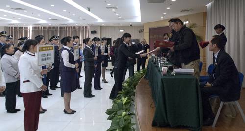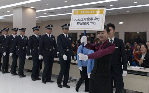 十一時(shí)賽事圓滿(mǎn)結束,大賽名次出爐??偛门虚L(cháng)張富英宣布了競賽團體和個(gè)人名次結果,房地產(chǎn)大廈物業(yè)服務(wù)中心,高新國際廣場(chǎng)物業(yè)服務(wù)中心,天府國際金融中心物業(yè)服務(wù)中心分別獲得團體一、二、三名??偨?jīng)理助理、賽事工作領(lǐng)導小組趙小平對大賽作了總結點(diǎn)評,并要求各物業(yè)服務(wù)中心要進(jìn)一步加強對員工的服務(wù)技能培訓和考核,不斷提高員工服務(wù)技能水平。在歡快的音樂(lè )中,市工會(huì )和公司領(lǐng)導向獲獎團體與個(gè)人頒發(fā)了獎狀和獎金。之后,大賽圓滿(mǎn)落幕。