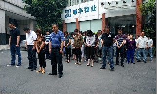 4月27日為全省哀悼日,8時(shí)02分,全省為蘆山地震遇難者默哀三分鐘。在汽車(chē)、火車(chē)、艦船的鳴笛聲和防空警報鳴響聲中,四川新華物業(yè)公司領(lǐng)導及全體人員在公司大樓前舉行了集體默哀儀式。