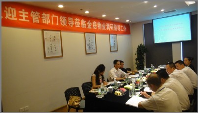 2013年6月2日上午九點(diǎn)許,成都市房管局物業(yè)管理處處長(cháng)袁慶華一行來(lái)到成都金房物業(yè)就現代物業(yè)轉型升級課題研究的需要和物業(yè)企業(yè)品牌建設的情況來(lái)公司調研。袁處長(cháng)在會(huì )議中談到物業(yè)行業(yè)發(fā)展到今天,正面臨著(zhù)轉型升級的問(wèn)題,大家一定要積極面對,并就此與大家作了交流。隨后,成都金房物業(yè)公司總經(jīng)理聞濤向領(lǐng)導們匯報了公司的基本概況、品牌建設情況、管理特點(diǎn)、企業(yè)發(fā)展的方向以及公司在品牌建設方面所面臨的問(wèn)題。袁處長(cháng)就提出的問(wèn)題給予了指導和建議,為公司品牌建設與企業(yè)發(fā)展指出問(wèn)題、提出要求、寄語(yǔ)希望。