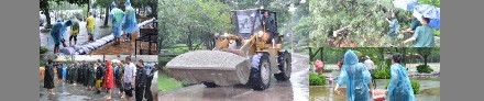早上,合達聯(lián)行游總及各部門(mén)主要負責人來(lái)到現場(chǎng),立刻啟動(dòng)防洪應急預案并迅速通知國旅、東虹、川信三家公司領(lǐng)導召開(kāi)緊急會(huì )議。短短的時(shí)間公司職能部門(mén)、國色天鄉各項目、??祈椖康热藛T按照應急預案內容,進(jìn)入防洪防汛狀態(tài)。第一時(shí)間到達受災嚴重的香頤麗都業(yè)主家中幫業(yè)主們清理積水,搬運物資。