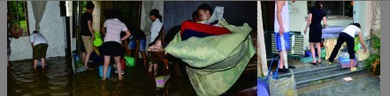 9:00,雨量減少,洪水開(kāi)始退去,全員集合,游總將大家分成數個(gè)小組,分別負責積水業(yè)主房屋地下室清掃工作。