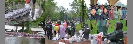 晚上十點(diǎn)洪水超過(guò)警戒水位,并越過(guò)我們設立的第一道防洪堤壩。因為我們的前期努力,洪水沒(méi)有越過(guò)后面的2、3道堤壩。沒(méi)有造成更大的損失。凌晨四點(diǎn)時(shí),洪水逐漸消退,但奮戰在第一線(xiàn)的員工門(mén)仍然沒(méi)有一點(diǎn)松懈!
