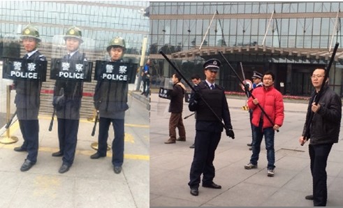 民興物業(yè)秩序維護隊負責值守1號大門(mén)、3號大門(mén),廣電為秩序維護隊員統一配發(fā)了反恐防護裝備(警用頭盔、盾牌、橡膠棒、狼牙棒等)。民興物業(yè)廣電項目管理部抽調20名秩序維護隊員,分成三個(gè)戰斗小組,集中住宿在廣電。按廣電保衛科和物業(yè)項目管理部共同制定的反恐維穩防范方案,各戰斗小組首先熟悉各自的守護位置,跑動(dòng)路線(xiàn),防備器械的使用以及協(xié)同配合口令。