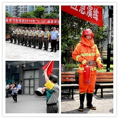 第三階段,上報戰損及救援情況?,F場(chǎng)應急演練指揮以集合口哨聲將各戰斗小組收攏集結后,下達:“各戰斗小組上報戰損及救援情況”命令。各戰斗小組分別上報戰損及救援情況。經(jīng)現場(chǎng)統計確認,本次應急演練共用時(shí)三分鐘,疏散、救援業(yè)主40名,業(yè)主無(wú)人員傷亡;應急隊員全部歸建,無(wú)人員傷亡。自此,中航工業(yè)成飛2014年“5.12”應對生活區高層樓宇火災疏散應急演練圓滿(mǎn)結束。