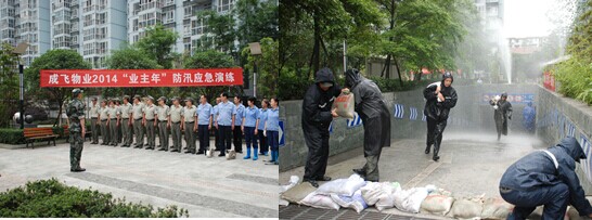 為響應成都市物業(yè)管理協(xié)會(huì )“業(yè)主年”活動(dòng),加強生活區汛期發(fā)生突發(fā)性洪水事件應急處置管理體系建設,提高生活區應對和處置發(fā)生突發(fā)性洪水事件及自然災害抗風(fēng)險能力,5月22日下午,成飛物業(yè)在盛暢園小區舉辦防洪實(shí)戰應急演練。