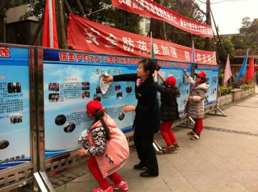 活動(dòng)期間,業(yè)主志愿者、物業(yè)志愿者、成師附小慧源校區教師學(xué)生志愿者,還在鎦金歲月小區開(kāi)展“清潔小區公共環(huán)境”志愿服務(wù)活動(dòng)。志愿者們積極參與到公共區域的衛生大掃除中,將小區里的道路掃的干干凈凈。小學(xué)生們在老師和志愿者阿姨的帶領(lǐng)下,提著(zhù)水桶打水、擰帕子,將花臺大理石圍邊擦的一塵不染,連低桿燈、垃圾桶他們也“不放過(guò)”,擦的仔仔細細,認認真真,成了小區里面一道亮麗的風(fēng)景線(xiàn)。
