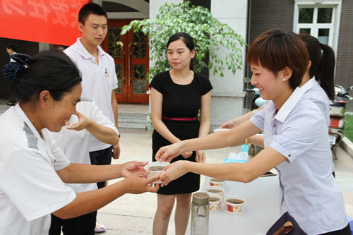 “您好!喝杯綠豆湯解解暑吧,你們辛苦了!”這是威斯頓物業(yè)后勤員工正在公司下屬各個(gè)項目為一線(xiàn)員工送綠豆湯。
