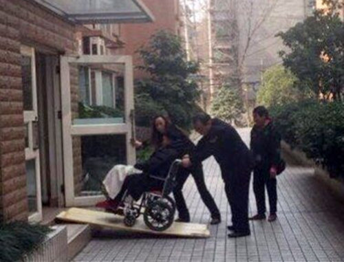 白馬寺小區1、2、4三棟樓所有單元都沒(méi)有殘疾人通道。2棟2單元業(yè)主胡大爺2014年搬來(lái)小區居住,由于老人家行動(dòng)不便,每天進(jìn)出都必須坐輪椅,而單元門(mén)口沒(méi)有殘疾人通道的情況給老人家帶來(lái)了極大的不便。照顧老人家的保姆也已近60歲,所以胡大爺的出行成了問(wèn)題。民興物業(yè)白馬寺物業(yè)服務(wù)中心在了解到這一情況后立馬采取措施,施以援手,幫助胡大爺解決出行問(wèn)題。