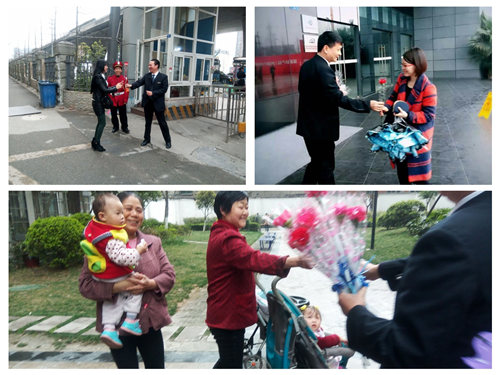 陽(yáng)春三月、花團錦簇,我們迎來(lái)了第105個(gè)三八國際婦女節。為了表達對女性的關(guān)愛(ài)與敬意,讓她們度過(guò)一個(gè)有意義、快樂(lè )的節日,三八節當天,公司在管的大合倉、康郡城、雙楠映象、月光誠品、豐尚、紅湖公園城等多個(gè)項目服務(wù)中心,紛紛行動(dòng)起來(lái),組織員工分別給小區和商戶(hù)的女性業(yè)主們送鮮花、獻祝?;顒?dòng)。