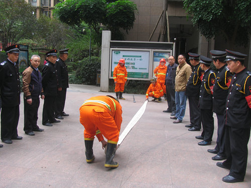公司紀莉總經(jīng)理、各項目經(jīng)理及小區業(yè)主代表現場(chǎng)參與體驗消防安全知識技能。并特邀小區商家店面消防責任人參加,得到了他們的大力支持。