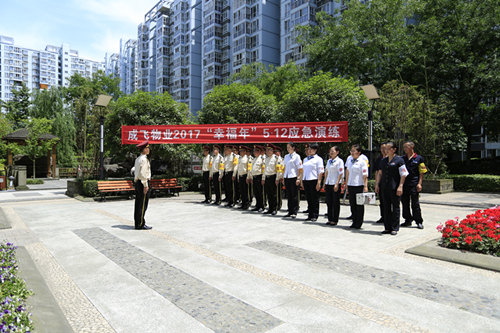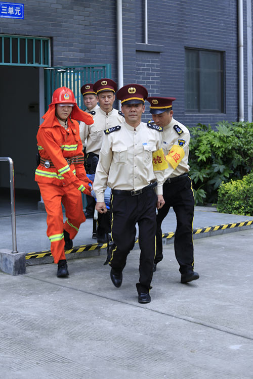 第一階段:疏散引導。14點(diǎn)28分,成飛物業(yè)工會(huì )主席胡波下達演練開(kāi)始號令,并由其擔任演練總指揮。盛暢園物業(yè)服務(wù)中心立即啟動(dòng)突發(fā)事件應急預案。應急團隊分成警戒、疏散、引導、接應、設施設備保障五個(gè)戰斗小組,按照預案的分工部署迅速奔赴各戰位。同時(shí),關(guān)閉相應建筑物水電氣總閥,開(kāi)啟單元、小區門(mén)禁,引導業(yè)主從建筑物中向小區外安全集結點(diǎn)疏散。