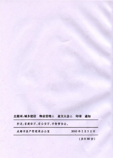 上一條:成都市房產(chǎn)管理局關(guān)于印發(fā)《成都市業(yè)主大會(huì )設立操作表格(示范文本)》的通知 下一條:關(guān)于舉辦“展女性風(fēng)采 抒物管情懷”三八婦女節演講比賽的通知