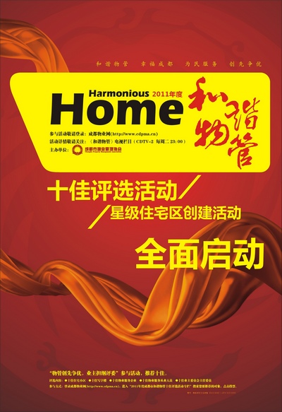 根據我市物管行業(yè)深入開(kāi)展“為民服務(wù)創(chuàng )先爭優(yōu)”活動(dòng)的有關(guān)要求,為配合2011年度成都市和諧物管十佳評選活動(dòng)、和諧物管星級住宅區創(chuàng )建活動(dòng)的開(kāi)展,協(xié)會(huì )印制了“和諧物管”宣傳海報,請各物業(yè)服務(wù)企業(yè)即日起到協(xié)會(huì )秘書(shū)處領(lǐng)取,并張貼到物業(yè)管理區域的顯著(zhù)位置。數量有限,領(lǐng)完截止。