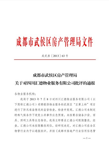 上一條:關(guān)于上報物業(yè)管理區域內澇災害情況的緊急通知 下一條:關(guān)于給予成都合力物業(yè)服務(wù)有限公司處理的通報