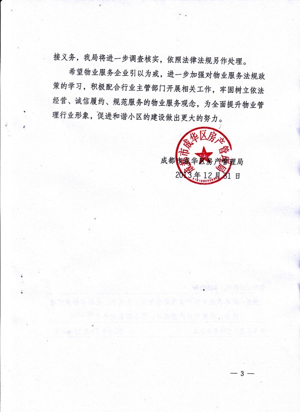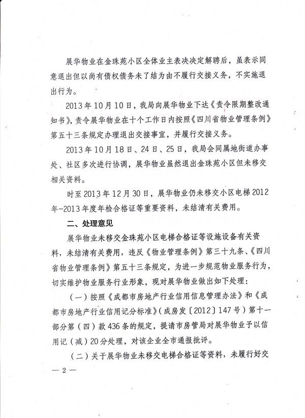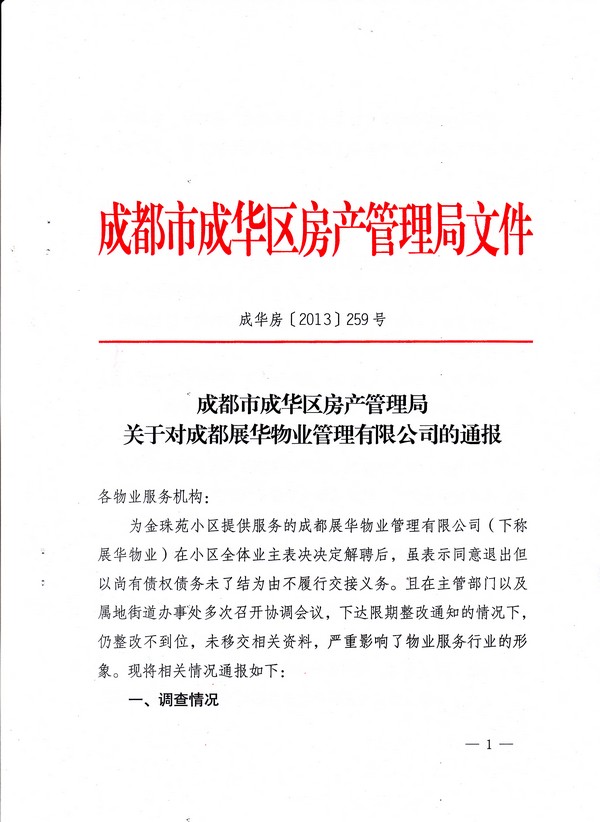 關(guān)于對成都展華物業(yè)管理有限公司的通報