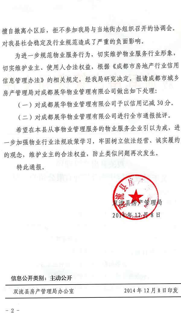 上一條:關(guān)于報送“業(yè)主年”主題活動(dòng)總結報告的通知 下一條:關(guān)于舉辦成都市物管行業(yè)轉型升級公開(kāi)課“長(cháng)城轉型之道”的通知