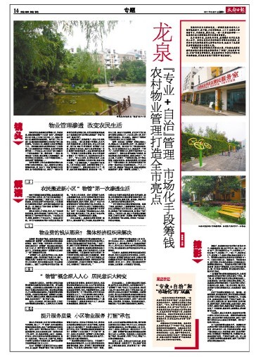 一邊是專(zhuān)業(yè)化物業(yè)管理的進(jìn)駐,一邊是社區居民自治的“滲透”,在龍泉驛區的農村物業(yè)管理中,這樣的方式得到了有效地推廣。“專(zhuān)業(yè)+自治”既讓物業(yè)服務(wù)水平享受到均等,同時(shí),將“自治”貫穿其中,讓居民能夠有效地參與到物業(yè)共管的局面中。在龍泉驛區的“西博苑”小區,由集體經(jīng)濟組織牽頭,將物業(yè)管理承包給專(zhuān)業(yè)化的物業(yè)公司,并按照其服務(wù)水平的滿(mǎn)意度,來(lái)劃撥物業(yè)費,讓居民充分地參與到“自治”的環(huán)節中。
