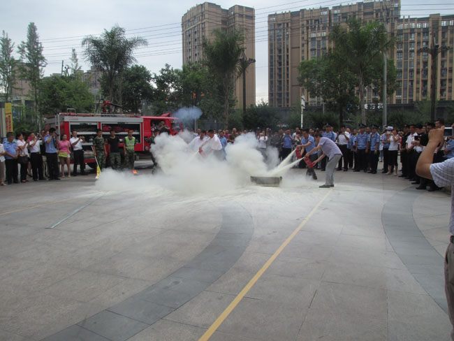 6月25日,邛崍市房管局聯(lián)合市公安局、市消防大隊、臨邛鎮人民政府及邛崍市物業(yè)協(xié)會(huì )在瑞云欣廣場(chǎng)舉辦2015年消防聯(lián)合演練活動(dòng),臨邛鎮城區社區代表、41家物業(yè)企業(yè)負責人及安全監管人、現場(chǎng)群眾共260多人參加。此次活動(dòng)旨在普及消防安全常識,提高物業(yè)企業(yè)人員及小區群眾消防安全意識,確保全市物業(yè)企業(yè)小區、拆遷工地、保障住房等房管局監管領(lǐng)域無(wú)安全事故發(fā)生?;顒?dòng)中,瑞云、竹溪、錢(qián)江物業(yè)參演人員組成參演小組,相繼展示了滅火器、麻袋、盤(pán)水帶的使用方法及注意事項,并輪流演示正確的火災報警方法。市房管局、市物協(xié)與會(huì )領(lǐng)導親自上場(chǎng)參與滅火器使用演練。此次演練取得圓滿(mǎn)成功,為確保全市物業(yè)管理區域安全穩定奠定堅實(shí)基礎。