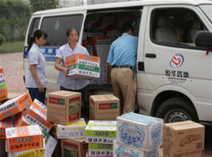 集結每一個(gè)小區的力量,為災區獻上一份愛(ài)心!——成都物協(xié)聯(lián)手搜房社集網(wǎng)發(fā)起賑災募捐活動(dòng)正式在成都市財政貿易學(xué)校拉開(kāi)帷幕,活動(dòng)受到了社會(huì )各界的關(guān)注,成都市物協(xié)自發(fā)組織捐贈了飲用水、食品、藥品等物資近2萬(wàn)元,鼎瑞物業(yè)捐助了200件礦泉水,附近一些熱心的老百姓還將自家的棉被拿來(lái),想為災區人民盡一份綿薄之力。