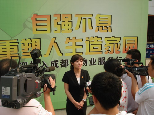 據了解,“5·12”特大地震后,成都市物業(yè)管理協(xié)會(huì )積極發(fā)動(dòng)會(huì )員單位向災區人民獻愛(ài)心,捐款捐物達千萬(wàn)余元。災后重建啟動(dòng)后,該協(xié)會(huì )積極提供就業(yè)平臺,幫扶災區群眾實(shí)現新的就業(yè),以增加收入。6月初,該協(xié)會(huì )組織會(huì )員單位在都江堰濱河小區舉辦了一場(chǎng)面向災區群眾的招聘會(huì ),130名受災群眾在物業(yè)服務(wù)企業(yè)找到理想的工作?!巴ㄟ^(guò)這次培訓,我對工作更有信心了,對明天的生活更充滿(mǎn)希望了!”都江堰市區的湯澤波家被震成了廢墟,苦心經(jīng)營(yíng)的電器維修鋪子也化為烏有,在物業(yè)專(zhuān)場(chǎng)招聘會(huì )上,他應聘到華昌物業(yè)公司做設備維護員。