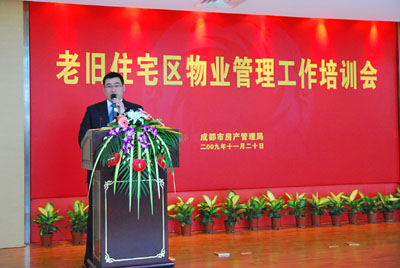 近日,為了積極探索老舊住宅區物業(yè)管理長(cháng)效機制,全面推進(jìn)我市中心城區老舊住宅區物業(yè)管理工作,同時(shí)對將于2010年1月1日起施行的《成都市業(yè)主大會(huì )活動(dòng)規則》(成府發(fā)〔2009〕47號)進(jìn)行宣貫學(xué)習,市房產(chǎn)管理局會(huì )同市物業(yè)管理協(xié)會(huì )舉辦了老舊住宅區物業(yè)管理工作培訓會(huì ),中心城區房管局物業(yè)管理負責人、各街道辦事處物業(yè)管理分管負責人和社區居委會(huì )相關(guān)工作人員等200余人參加了培訓。
