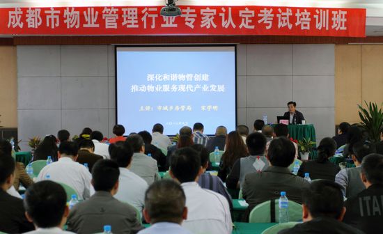 2012年9月21日上午,成都市物業(yè)管理行業(yè)專(zhuān)家認定考試培訓班在成都科技會(huì )堂拉開(kāi)了帷幕。成都市城鄉房產(chǎn)管理局副局長(cháng)宋學(xué)明、物業(yè)管理處處長(cháng)袁慶華出席開(kāi)班典禮。全市共有173名通過(guò)專(zhuān)家資格審查的從業(yè)人員參加了此次培訓。