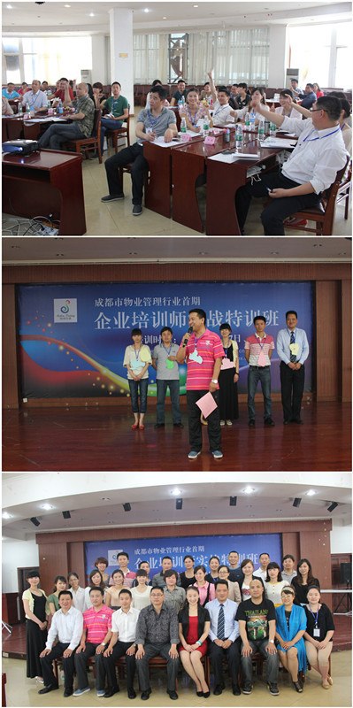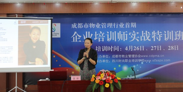 2013年4月26—28日,由成都市物業(yè)管理協(xié)會(huì )主辦,四川時(shí)尚職業(yè)培訓學(xué)校承辦的為期三天的成都市首期物業(yè)行業(yè)企業(yè)培訓師課程圓滿(mǎn)結束。來(lái)自成都市各物業(yè)公司的43名從業(yè)人員參加了此次培訓,學(xué)員當中有在本單位從事企業(yè)培訓師工作的,還有對企業(yè)培訓有著(zhù)濃厚興趣的。