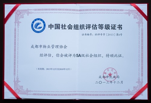 在2013年的社會(huì )組織評估活動(dòng)中,成都市物業(yè)管理協(xié)會(huì )以務(wù)實(shí)創(chuàng )新的工作思路,嚴謹高效的工作作風(fēng),積極向上的工作氛圍,亮點(diǎn)紛呈的工作業(yè)績(jì)得到社會(huì )組織評估委員會(huì )專(zhuān)家的一致好評,并在全市社會(huì )組織中脫穎而出,獲得最高5A級評價(jià)。
