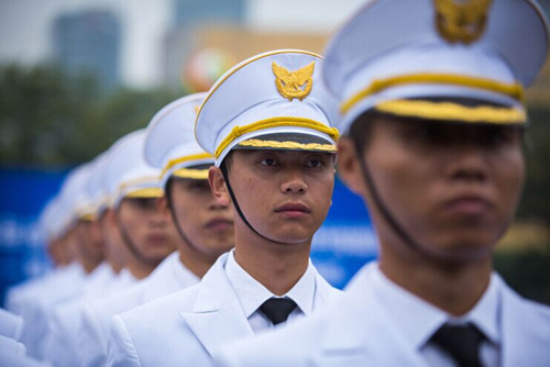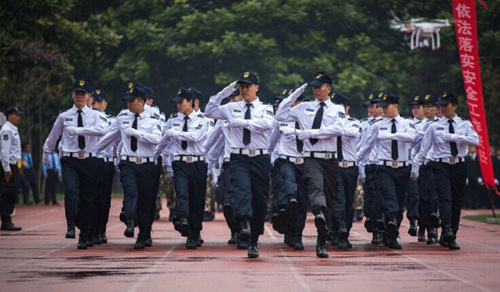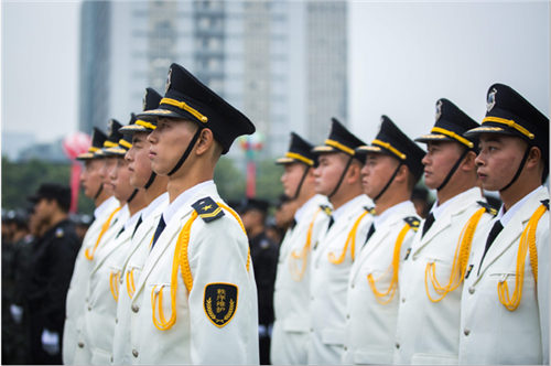 下午1點(diǎn)30分,運動(dòng)場(chǎng)上彩旗飄展、十六支“安全年”活動(dòng)空飄標語(yǔ)圍繞在賽場(chǎng)周?chē)?,各參賽隊伍在?chǎng)上整齊列隊。隨著(zhù)競賽演練總指揮一聲令下,活動(dòng)的第一部分秩序維護技能競賽拉開(kāi)序幕,盛大而精彩的分列式正式開(kāi)始,由700名秩序維護隊員組成的16支方隊沿著(zhù)跑道依次行進(jìn)。他們隊列整齊、步伐有力、口號震天、英姿颯爽,充分展現出我市物業(yè)人昂揚向上的精神風(fēng)貌,贏(yíng)得在場(chǎng)觀(guān)眾陣陣掌聲。
