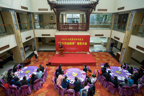 上午是三八行業(yè)標兵表彰大會(huì )。成都市物業(yè)服務(wù)三八行業(yè)標兵評選活動(dòng)已經(jīng)連續開(kāi)展了9屆。歷屆活動(dòng)都得到了行業(yè)的高度關(guān)注和熱情參與,今年,各物業(yè)服務(wù)企業(yè)共推薦標兵候選人200名,通過(guò)資格審查、條件評審、信用查詢(xún)、事跡評議等綜合評定,最終評選出30名“三八行業(yè)標兵”。會(huì )上,協(xié)會(huì )對30名獲得“2016年度成都市物業(yè)服務(wù)三八行業(yè)標兵”稱(chēng)號的同志進(jìn)行了表彰,并頒發(fā)了榮譽(yù)證書(shū)和獎品。