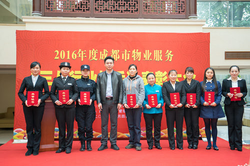 成都市物業(yè)管理協(xié)會(huì )副秘書(shū)長(cháng)茍強為標兵頒獎