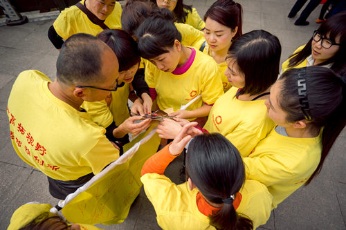 在下午的趣味登山活動(dòng)中,來(lái)自不同物業(yè)服務(wù)企業(yè)的參與人員分為6個(gè)小隊進(jìn)行游戲和競賽。大家通過(guò)一起設計隊旗、喊口號,以凝聚團隊共識、提振團隊士氣;在競賽環(huán)節,大家互相信賴(lài)和幫助,為了共同的目標和任務(wù)而努力拼搏?;顒?dòng)充分契合“集智謀創(chuàng )新”的主題,各支隊伍充分發(fā)揮主觀(guān)能動(dòng)性,創(chuàng )造性的完成了6項挑戰項目。最后,當體力幾乎已經(jīng)耗盡的時(shí)候,大家依然堅持登上了靈巖山。在山頂,她們一個(gè)個(gè)笑得燦爛,留下了自己最美麗也最堅韌的身影。