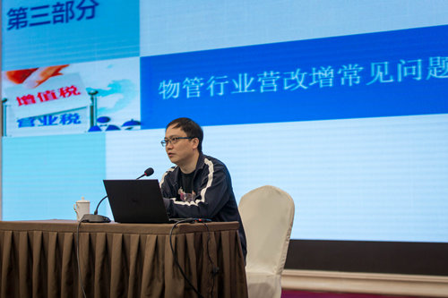 講座中,付鴻雪副處長(cháng)首先介紹了國家“營(yíng)改增”政策出臺的背景及全省“營(yíng)改增”前期運行情況。付鴻雪副處長(cháng)指出,“營(yíng)改增”政策通過(guò)統一稅制,貫通服務(wù)業(yè)內部和二、三產(chǎn)業(yè)之間抵扣鏈條,從制度上消除重復征稅,使稅收的中性作用得以充分發(fā)揮,有利于營(yíng)造公平競爭的市場(chǎng)環(huán)境,對完善我國財稅體制有長(cháng)遠意義。劉偉老師結合物業(yè)管理行業(yè)實(shí)際,對 “營(yíng)改增”的基本政策及在新政施行中的重點(diǎn)注意事項進(jìn)行了全面的解讀。